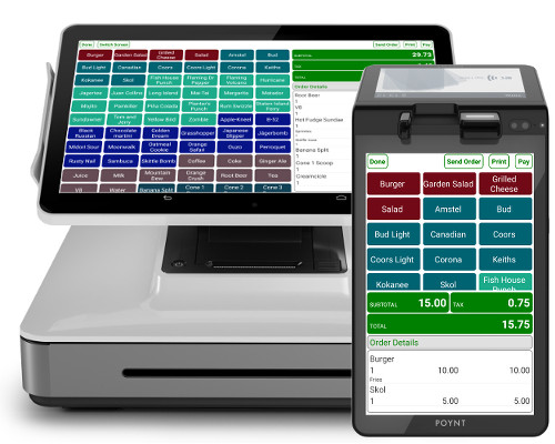 Elegant counter top all-in-one devices include a large screen, receipt printer, barcode scanner, cash drawer and customer facing display. Portable devices allow you to sell anywhere.